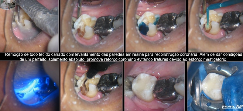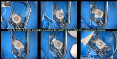 A utilização de recursos auxiliares, para completar o isolamento é de fundamental importância. O lençol de borracha simplesmente não é suficiente para promover um isolamento total. Sempre irá ficar um espaço entre o dente e lençol ou grampo. Portanto o uso de super Bond ( cianoacrilato ) faz parte de um protocolo preciso e seguro. Como também, barreiras resinosas fotopolimerizáveis como: TopDam, Gengival barrier, Protection gengival etc..